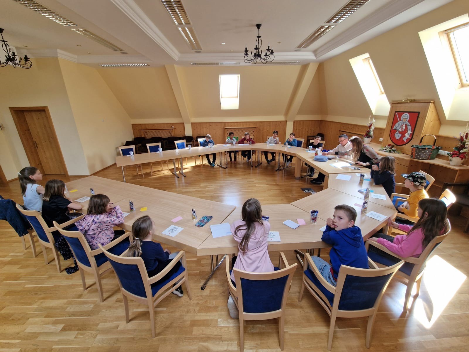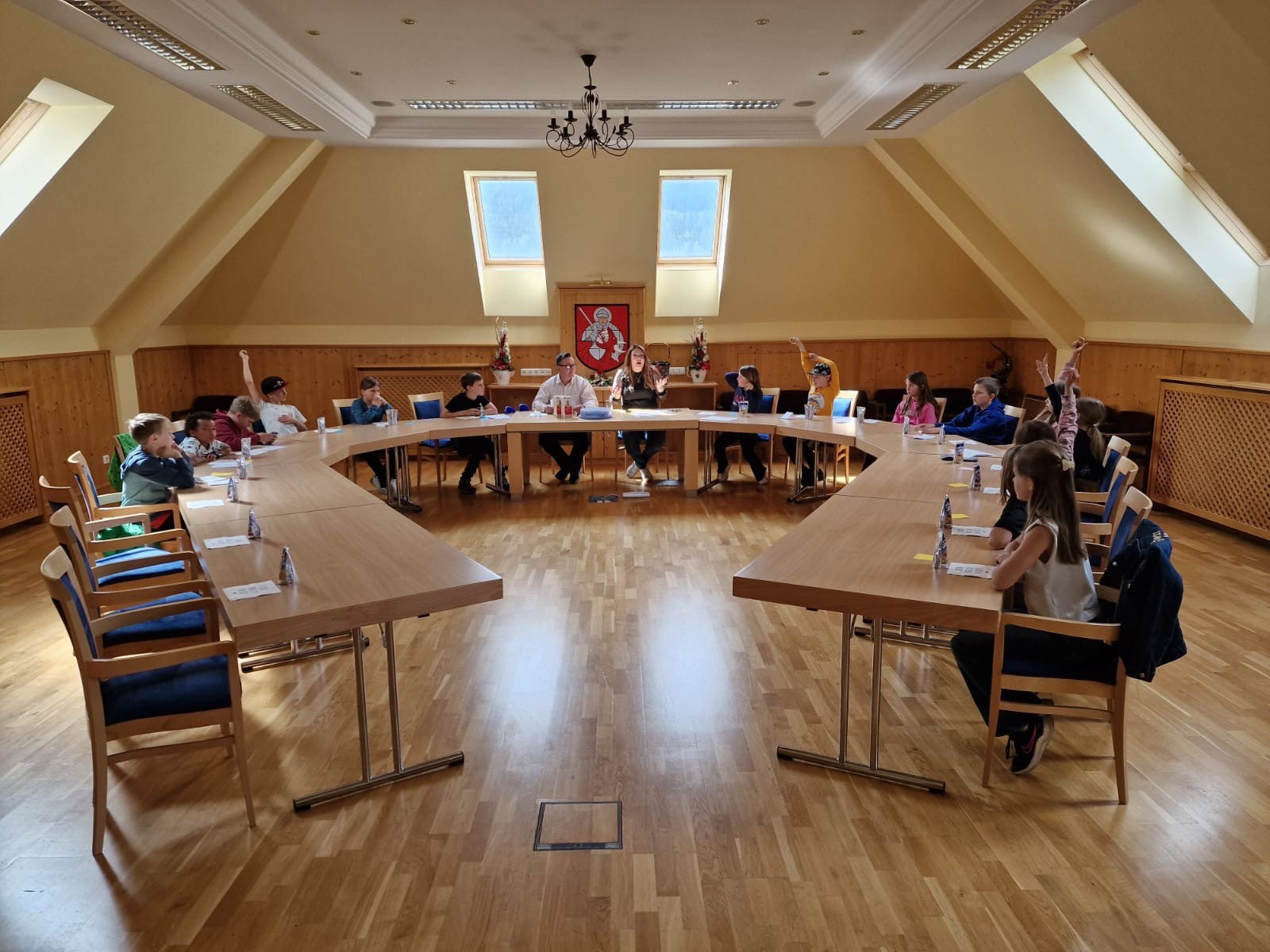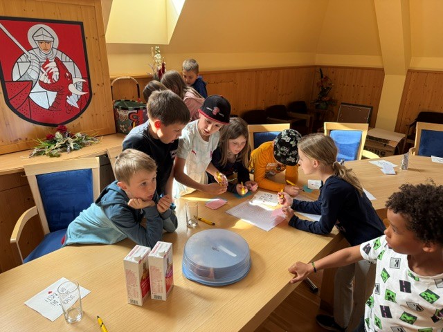 Anschließend haben die Kinder wichtige Kernthemen gesammelt, darüber diskutiert und diese – ganz wie im echten Gemeinderat – behandelt und abgestimmt. Für die Sitzung wurde der Sitzungssaal des Gemeinderates genutzt.