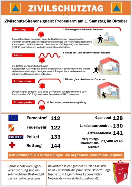 Im Zuge des Zivilschutzprobealarms am 4.10.2025 wird der Stresstest im Haushalt empfohlen: